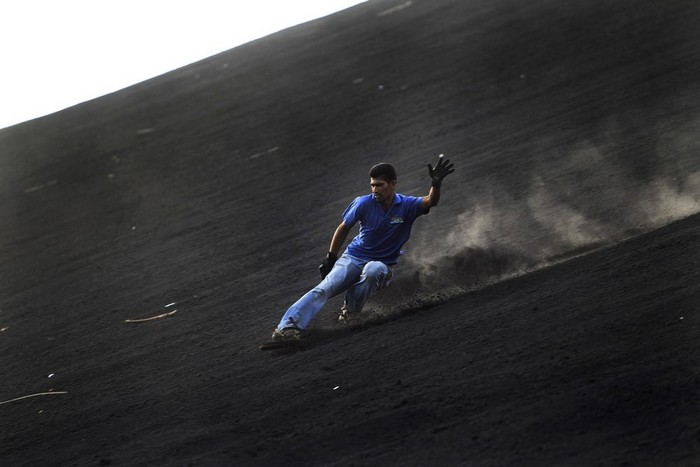 По пепельно-черному склону этого вулкана ежедневно на специальных досках спускаются сотни туристов и настоящих спортсменов. При этом максимальная скорость спуска может достигать 80 километров в час. Чтобы защитить людей от увечий, организаторы одевают их в специальные костюмы из крепкой материи.