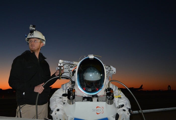Алан Юстас готовится к полету и прыжку из стратосферы