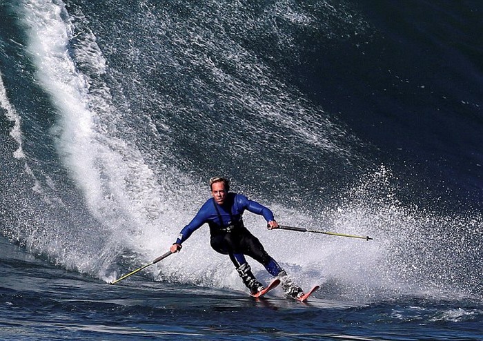 Ведь появился новый водный вид спорта – серфинг на лыжах. Его придумали калифорнийские лыжники, которые в условиях вечной нехватки снега в данном регионе решили покорять на своем любимом спортивном инвентаре огромные приливные волны, которыми славится побережье американской Калифорнии.