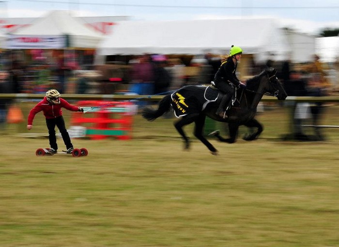 Хорсбординг – это спорт для тех людей, кто живет в сельской местности далеко от гор или океанов с огромными волнами, но мечтает заниматься серфингом или сноубордингом. Спортсмены-хорсбордеры используют в качестве основного спортивного инвентаря специальную доску с большими колесами. А в качестве движущей силы в данном случае выступают живые лошади.