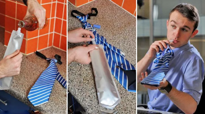 И наконец, изобретение, которое находится вне конкуренции в нашем списке – шпионская фляга, которую с легкостью можно спрятать в самый обычный галстук. Легким движением руки напряженные рабочий день превращается в маленький праздник.