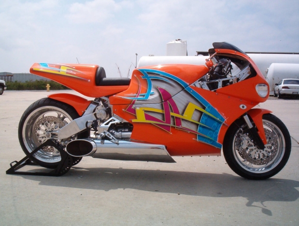 Яркий, спортивный, эргономичный — таких лошадок выпускают всего пять в год. Сделать управление мотоциклом более безопастным и удобным помог цветной ЖК-монитор, на который выводится изображение заднего вида. Байк развивает скорость до 402 км/ч при своем весе 227 кг.