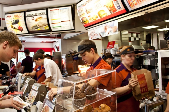 Перед каждым продавцом фастфуда стоит задание – убедить клиента съесть больше. К примеру, около 85% людей делают дополнительный заказ, если им предлагают конкретные позиции в меню. Такие соблазнительные фразы как «Возьмете?» или «Попробуете?» заставляют голодного человека раскошелиться.