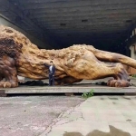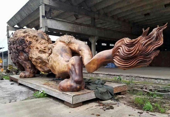 В Китае появилась скульптура льва, которая создана из цельного куска дерева. Над ней работало 20 художников в течение трёх лет. В длину она превышает 14 метров, в высоту – 5 метров, а в ширину – 4 метра. Это самая большая скульптура, созданная из единого куска дерева.