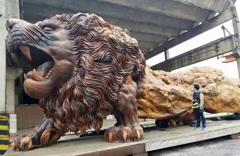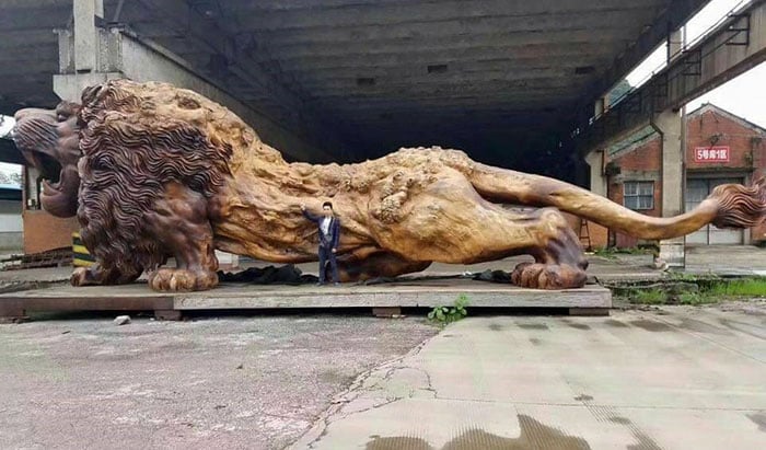 В Китае появилась скульптура льва, которая создана из цельного куска дерева. Над ней работало 20 художников в течение трёх лет. В длину она превышает 14 метров, в высоту – 5 метров, а в ширину – 4 метра. Это самая большая скульптура, созданная из единого куска дерева.