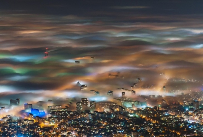 гора рядом с Сиэтлом парит в облаках