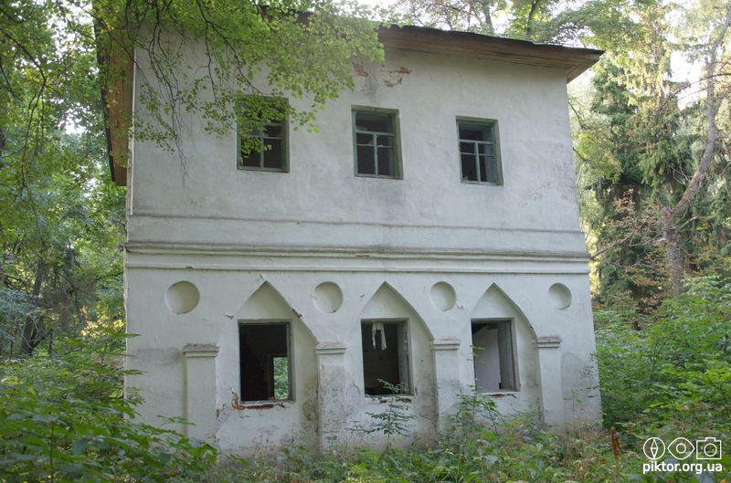 Некогда огромную усадьбу, расположенную на высоком берегу речки Лисогор, считали одной из самых красивых в Украине. Центральная двухэтажная часть была связанна с двумя боковыми флигелями одноэтажных галерей. Вместе с парком и оранжереей она составляла прекрасный и гармоничный ансамбль.