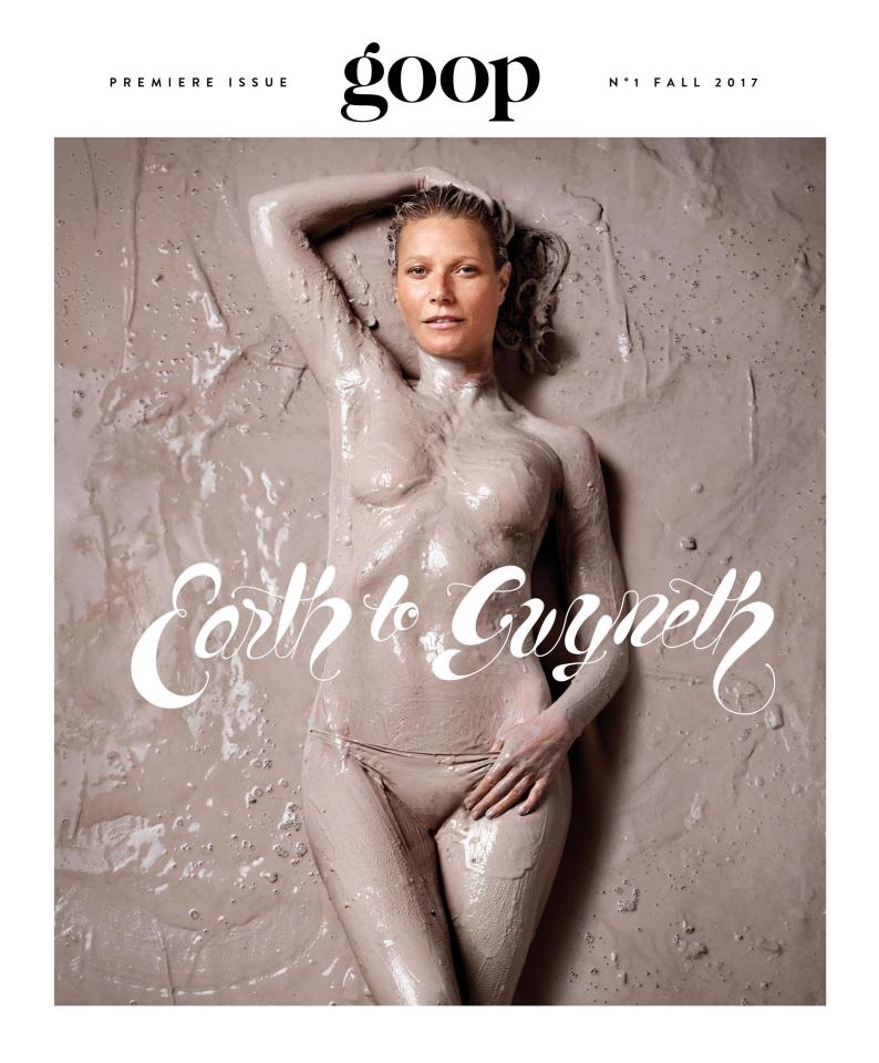 Актриса Гвинет Пэлтроу выпустила свой собственный журнал Goop magazine. По такому случаю она снялась топлесс с одних трусах бикини. Полностью обмазанная глиной.