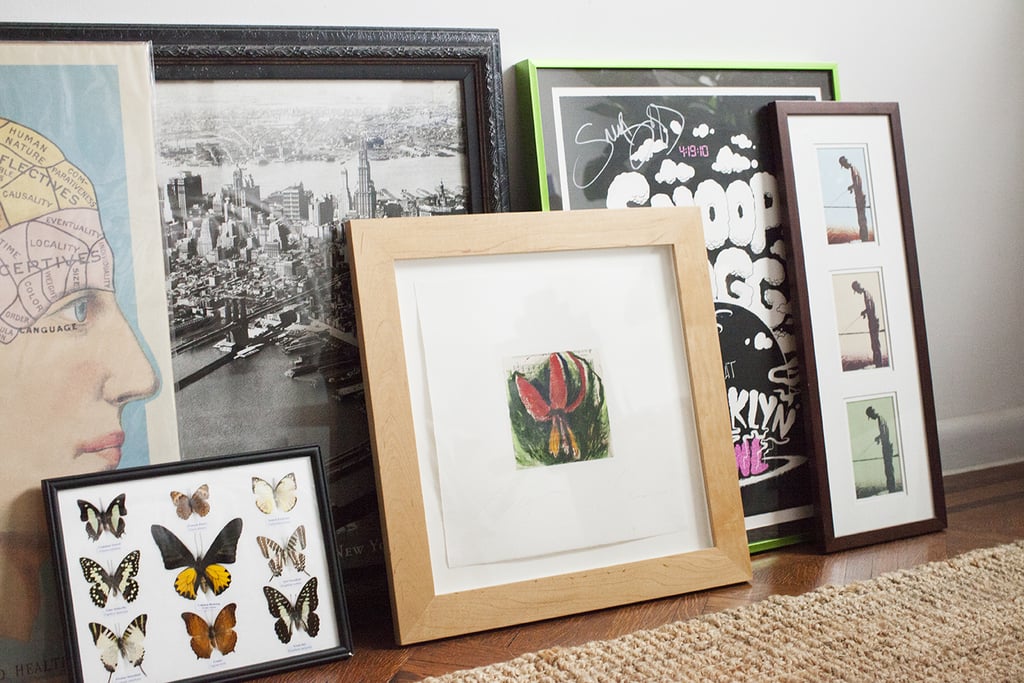 Легкий способ подчеркнуть индивидуальность интерьера – использовать фотокартины в рамках. Их можно не только вешать, но и ставить, что дает еще большее пространство для творчества. Попытайтесь самостоятельно скомпоновать кадры, поиграть с монохромным изображением, соединить однотипные черно-белые снимки или пойти дальше и создать собственную цветную причудливую композицию.