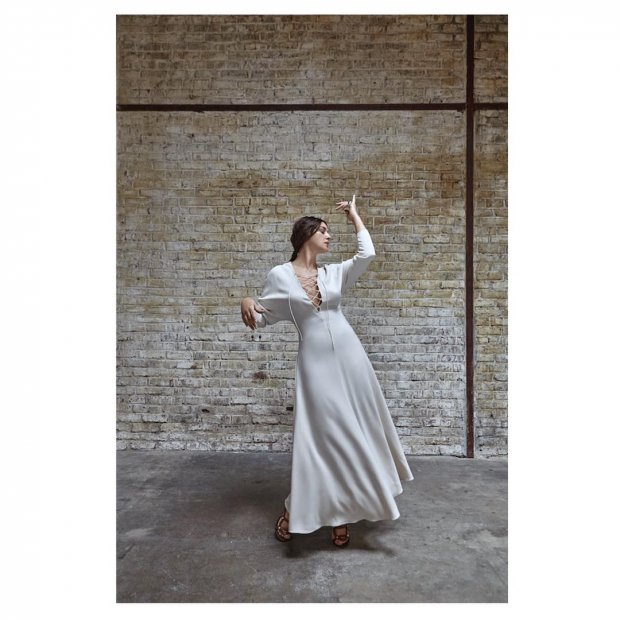 На некоторых кадрах кинодива запечатлена в платье с глубоким декольте и шнуровкой, под которой отчетливо видно отсутствие бюстгальтера.