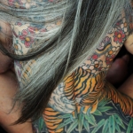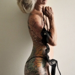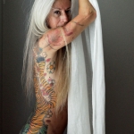 Спина, плечи ягодицы и часть бёдер модели покрыты разноцветными татуировками. Это придаёт экзотики её спортивному – не по возрасту – тему. Женщина активно занимается йогой. Одним из главных мотивов, по которым она опубликовала эти снимки стало желание показать, что женщина может быть сексуальной даже в таком возрасте.