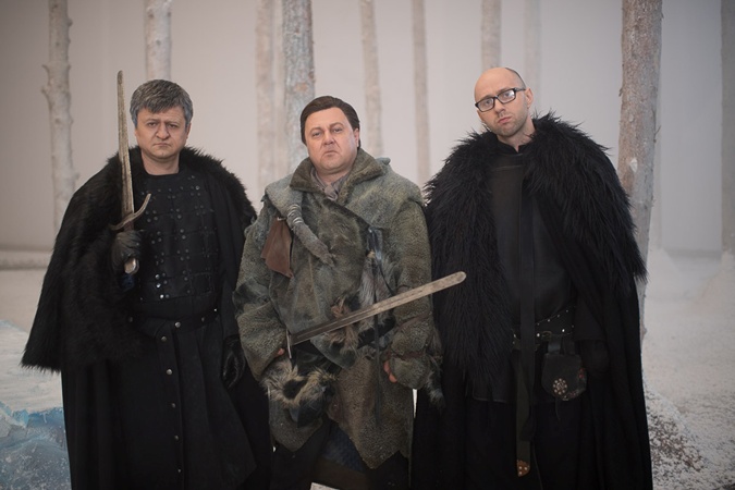 «Интриги, ложь, предательство, полный крах и следующие за ним триумфы – все, как в жизни наших политиков. Сможет ли король Порошион завоевать авторитет среди народа Семи Королевств — узнаете уже в эту пятницу на «1+1», — обещают «кварталовцы».
