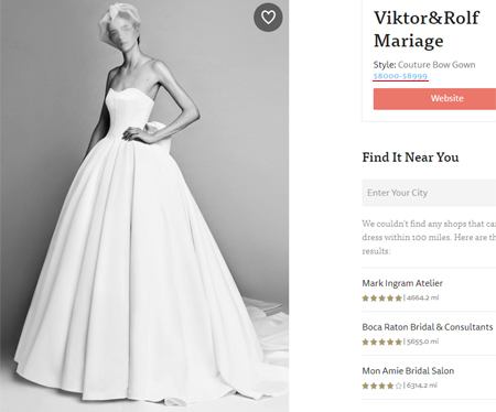 Наряд выпущен нидерландским модным домом Viktor&Rolf. Это белоснежное платье с огромным бантом сзади девушка одела во время торжественной церемонии, которая проходила в Турции (курорт Мармарис). А до этого, 7 июля, было отдельное празднование свадьбы в Харьковской области. Её избранником стал сын экс-советника ее отца по вопросам топливно-энергетического комплекса Олега Гуревича.