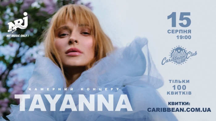 15 августа TAYANNA выступит с камерным концертом в столичном Caribbean Club Concert-Hall. Новые и любимые песни «Фантастична Жінка», «Шкода», «Леля», «Як плакала вона» прозвучат с особым шармом.