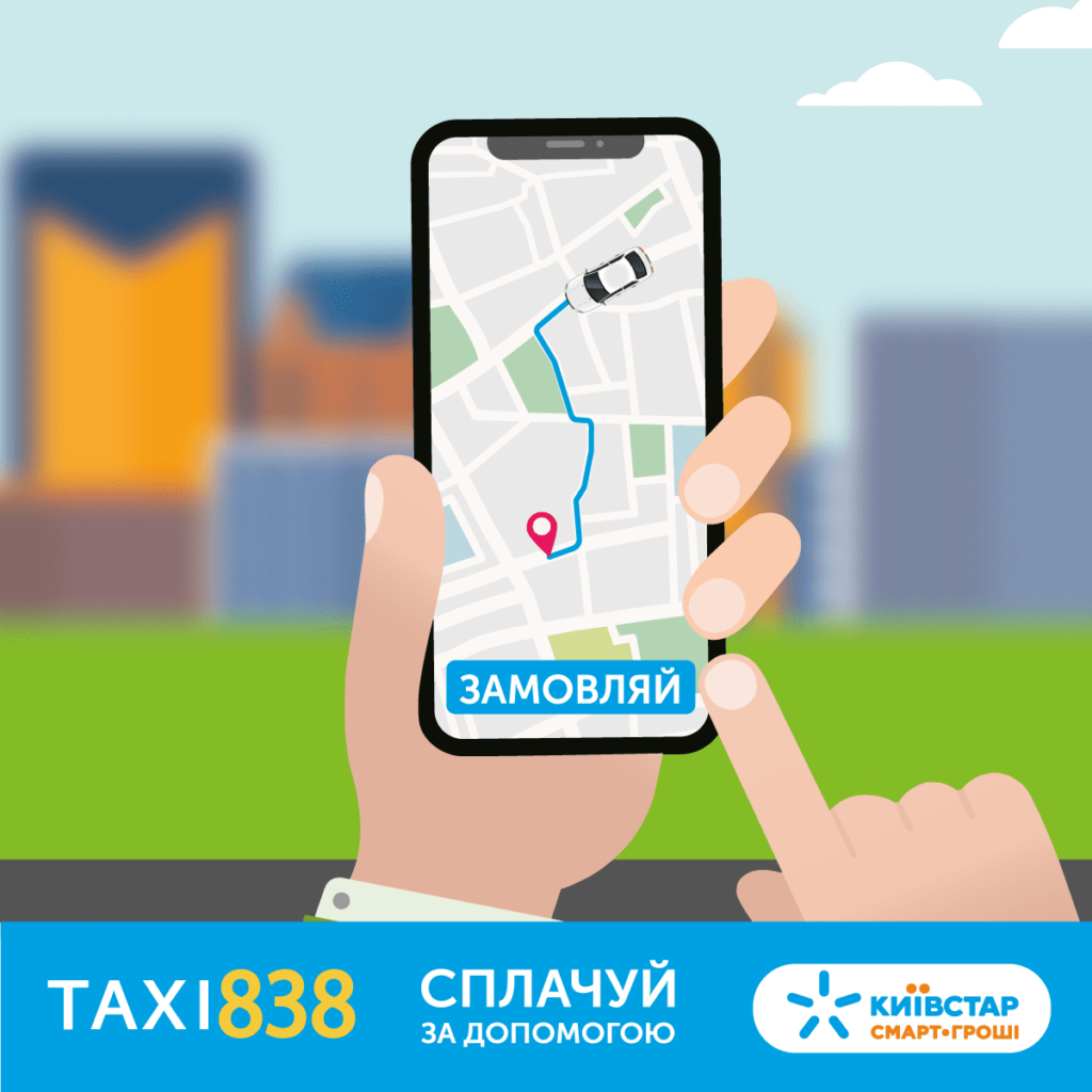 Услуга доступна всем абонентам предоплаты Киевстар в 15 городах** Украины, где работает такси 838. Расчет реализовывается с помощью финансового сервиса Киевстар «Смарт-Гроші»*. Для этого, при заказе нужно указать форму оплаты «Смарт-Гроші» от Киевстар, либо загрузить приложение Такси 838 в App Store или Google Play и выбрать соответствующую форму оплаты.