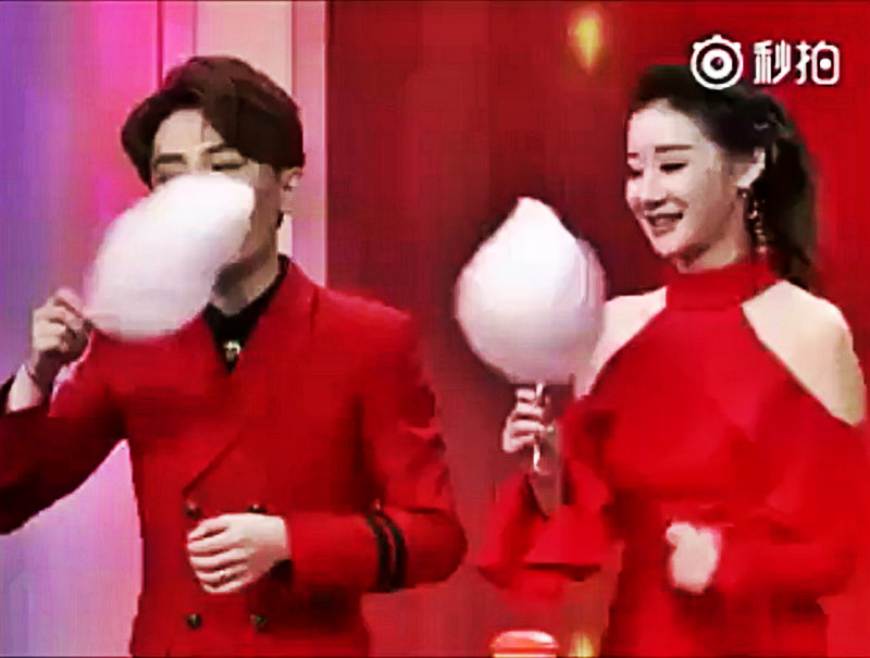 Китайские ведущие канала Zhejiang TV решили в прямом эфире посоревноваться в поедании сладкой ваты.