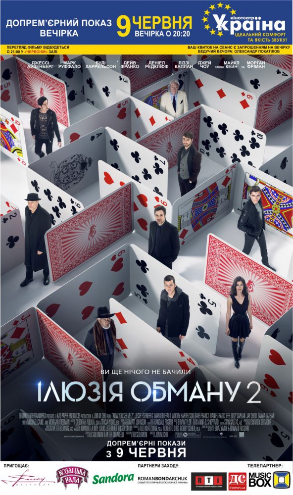 9 июня, в четверг, кинотеатр «Украина» приглашает на допремьерный показ-вечеринку комедийного триллера «Иллюзия обмана 2»!