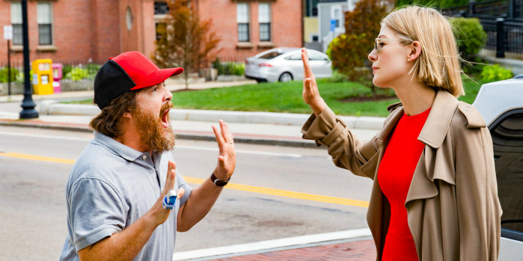 I Care A Lot: (L to R) Macon Blair as “Feldstrom” and Rosamund Pike as “Martha”. Photo Cr. Seacia Pavao / Netflix