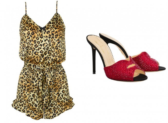 Главные акценты новой коллекции: леопардовые принты, маски для сна «кошачьи мордочки», забавные балетки с ушками и трусики с завышенной талией, скульптурирующие фигуру со вставками из тончайшего кружева, напоминающего паутинку — отличительный знак марки Charlotte Olympia, который принято называть «паутина Шарлотты». Также особого внимания заслуживают эффектные чулки-ботфорты More is More из люрекса.
