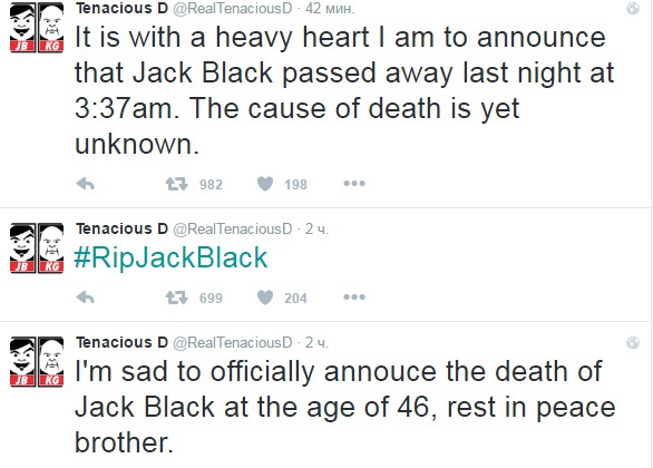 Позже на странице в твиттере группы Tenacious D появилось сообщение, что сообщение о смерти было шуткой.