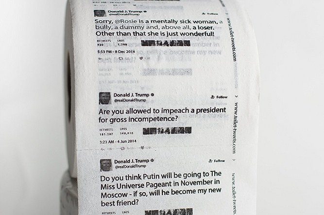 Компания Amazon выпустила туалетную бумагу, на которой напечатаны твиты президента США Дональда Трампа. При этом фигурируют на ней лишь те сообщения, которые он опубликовал до своего прихода в кресло главы государства.