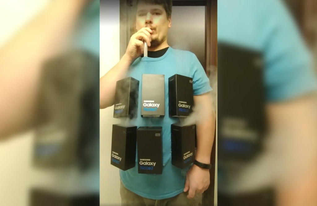 Американец Крис Кайли (Chris Kiley) стал звездой Facebook, продемонстрировав на видео свой костюм для Хэллоуина — футболку с закреплёнными на ней коробками от Galaxy Note 7. За несколько дней ролик набрал почти два миллиона просмотров.