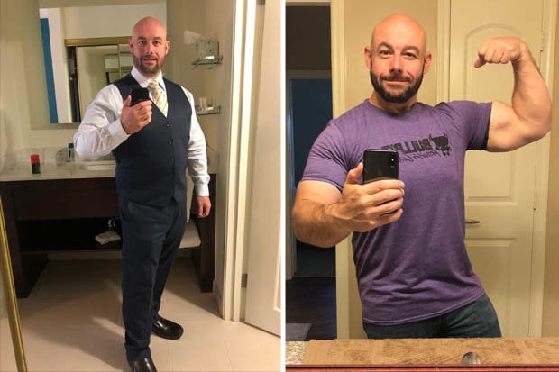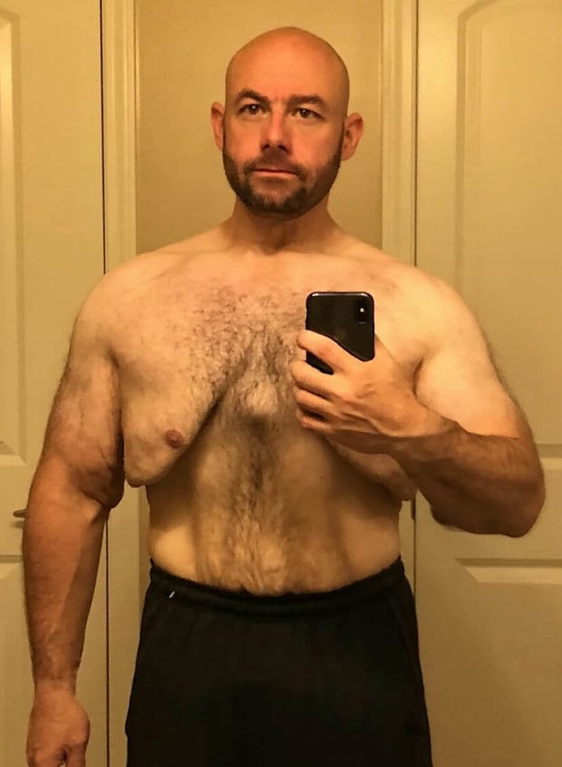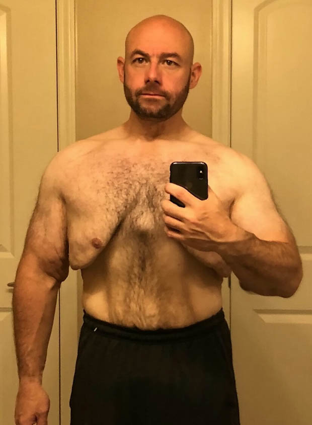 Мужчина приходит в спортзал в 4.30 утра и заканчивает занятия в 6 утра. Сейчас объем его талии составляет 82 см. Мужчина чувствует себя отлично и готовиться к операции по удалению лишней кожи.