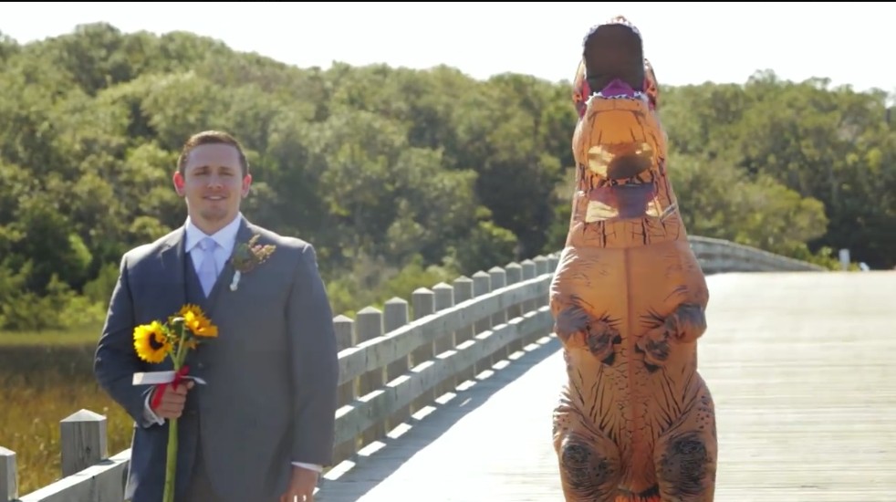 Жительница американского штата Северная Каролина решила прийти на собственную свадьбу в костюме тираннозавра. Видео момента ее встречи с женихом в Facebook за 5 дней набрало более 2,8 млн просмотров.