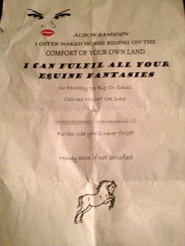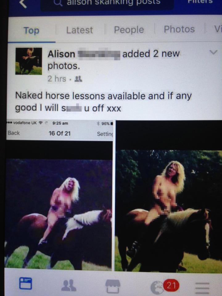 46-летняя Эллисон Рамзден и подумать не могла, что ее дружба с 51-летней Эрикой Бенедик сможет перерасти в жуткую вражду. Так, экс-приятельница завела фейковую страничку женщины в социальной сети, где выложила обнаженные фото Эллисон верхом на коне, снабдив их пошлыми надписями: «Я грязная шлюха, для которой, чем больше, тем лучше. Особенно я люблю придаваться утехам с жеребцами». Об этом сообщает The Sun. Стоит отметить, что эти фото находились в личном архиве женщины, были сделаны для ее партнера и уж никак не предназначались для посторонних глаз. Также Эрика изготовила флаера, где написала номер бывшей подруги, выдав ее за проститутку, предлагающую свои интимные услуги. Она стала раздавать бумажки в тех местах, где чаще всего появлялась Эллисон.