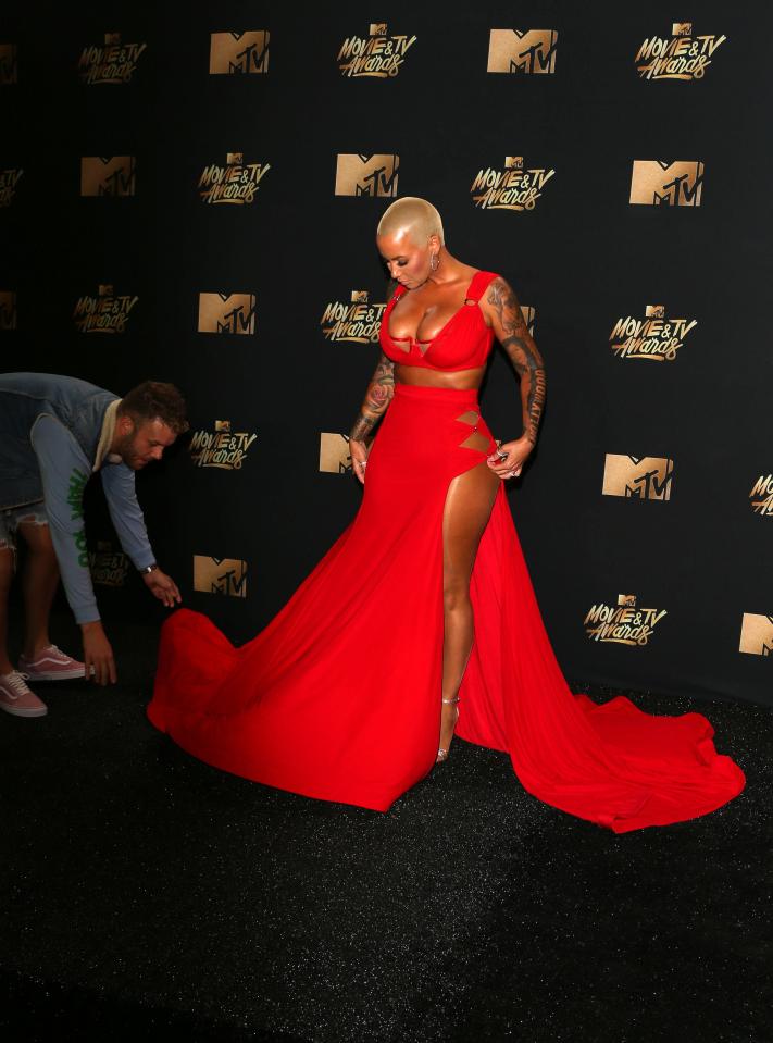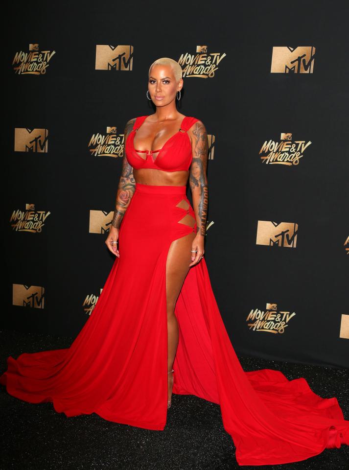 Британская актриса и модель Эмбер Роуз ступила на красную дорожку MTV Movie & TV Awards в Лос-Анджелесе в очень пикантном наряде.