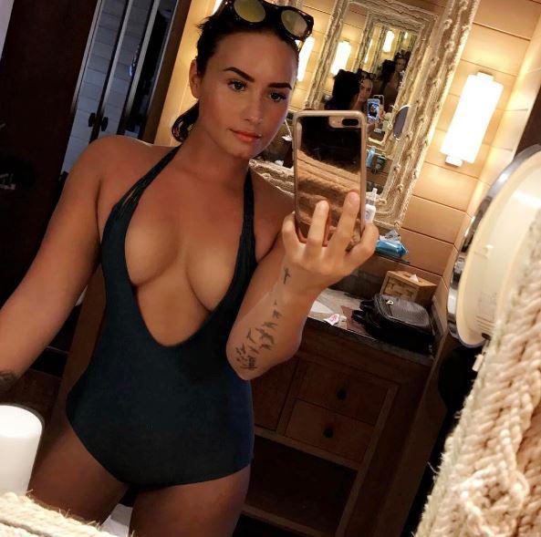 Американская актриса и певица Деми Ловато похвасталась новым купальником с откровенным глубоким вырезом. В этом наряде грудь певицы была максимально открыта.