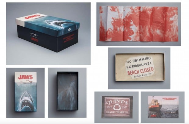 Бренд Sperry выпустил женскую, мужскую и унисекс коллекции. Все модели продаются в коробках с надписью «Пляж закрыт» и завернуты в «окровавленную» бумага. Приобрести новинку можно будет в начале июня.
