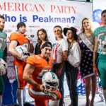 Американская вечеринка не обошлась без выступлений спортсменов американского футбола, чирлидеров, дизайнерского показа»Америка» от бренда POLTORETSKAYA и, конечно же, традиционных американских угощений.