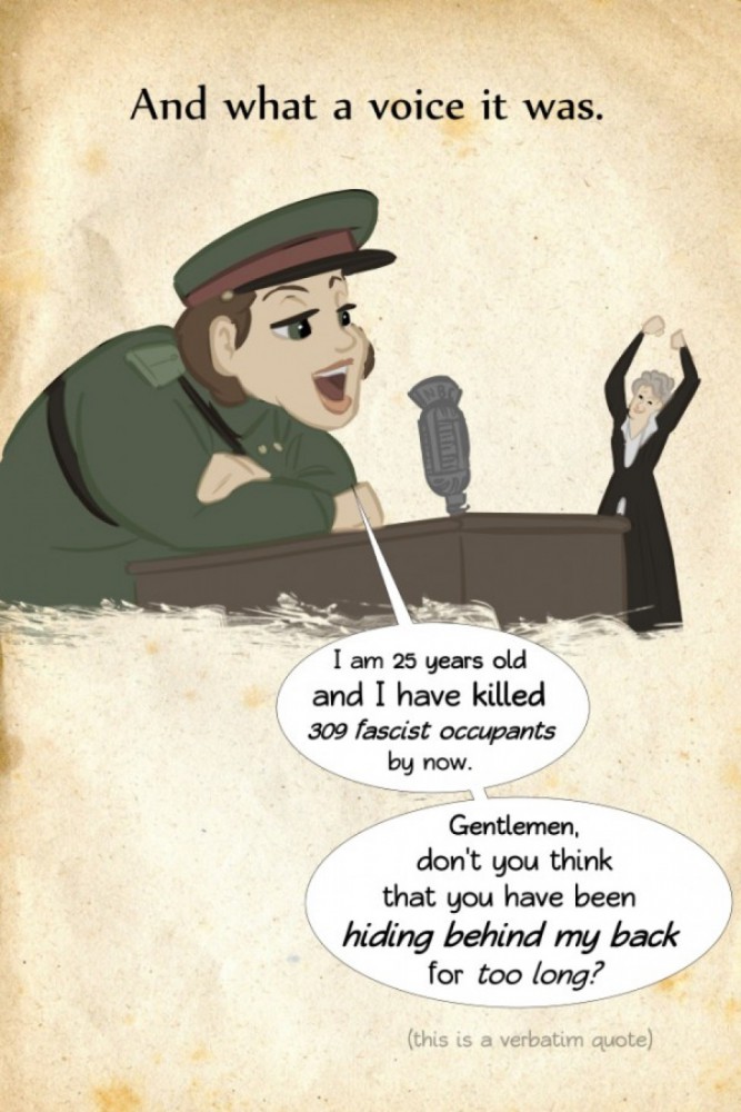 Рисованные комиксы о Павличенко выпустила группа американских иллюстраторов Rejected Princesses.