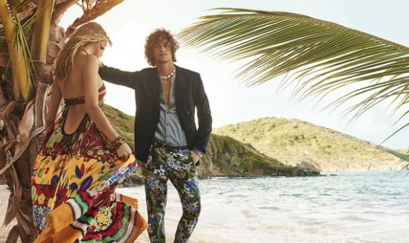 Модель, которая является по совместительству еще и женой известного музыканта Адама Левайна, снималась в компании загорелых мускулистых ребят на берегу океана на фоне экзотических пейзажей, тропически пальм, жаркого солнца и песчаных пляжей.