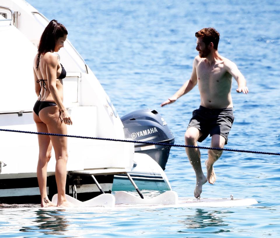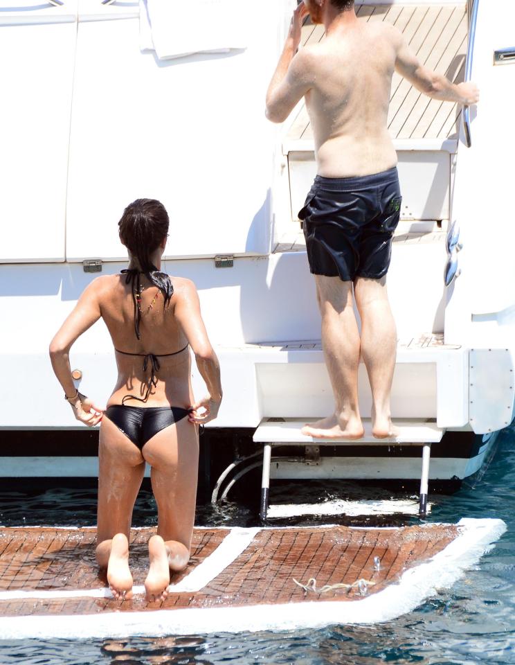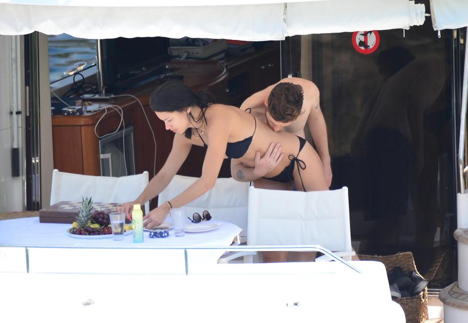 Парочка отдохнула на яхте, не стесняясь демонстрировать свои пылкие чувства. Супермодель красовалась в черном купальнике мини бикини, который подчеркнул ее идеальную фигуру.