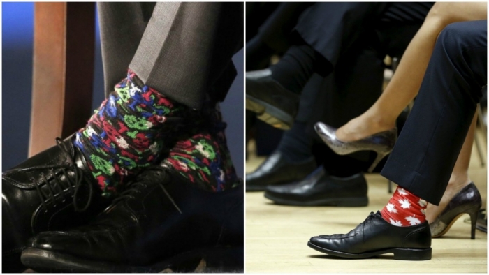 Напомним, что Трюдо нередко одевает разноцветные носки. Например, на встрече с премьер-министром Ирландии он одел носки с роботами R2-D2 и C-3PO из «Звёздных войн».