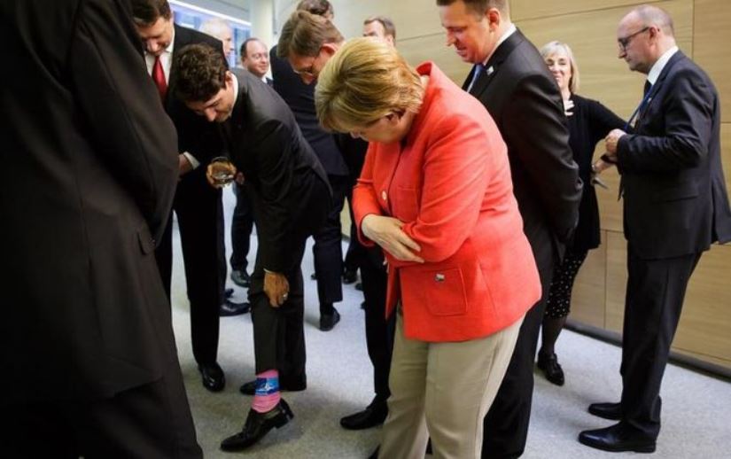 При этом под снимком носков Меркель написала: «Крутые носки, Джастин Трюдо! Премьер-министр Канады с гордостью представляет своё новое приобретение на встрече НАТО в Брюсселе».