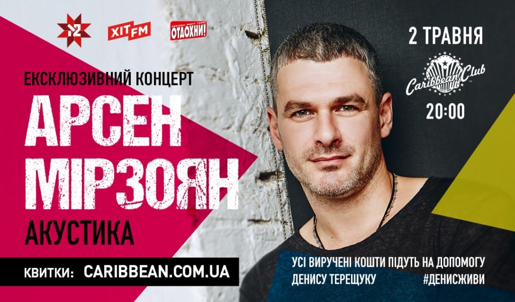 2 мая в Caribbean Club Concert Hall состоится благотворительный концерт Арсена Мирзояна. Собранные средства пойдут на помощь Денису Терещуку, который нуждается в пересадке кишечника.