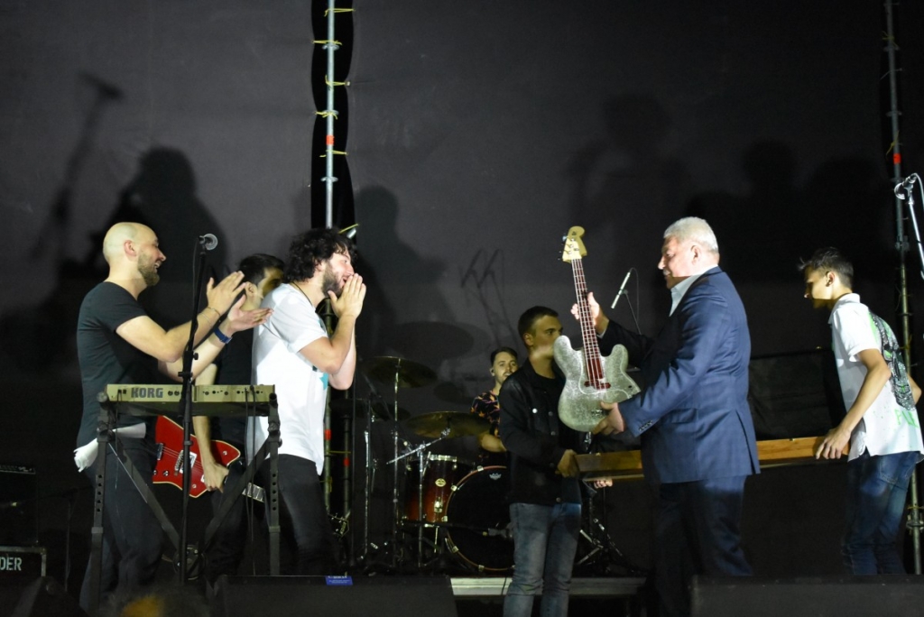 В субботу, 8 сентября, группа AVIATOR поздравила с Днём города жителей Бахмута концертом на стадионе местного спортивного комплекса “Металлург”. Публика очень тепло встретила как проверенные хиты музыкантов, так и новинку “Небо на двох”. В благодарность за выступление городской голова Алексей Рева вручил фронтменам Дмитрию Тодорюку и Андрею Сторожу эксклюзивную гитару “Fender”, ювелирно созданную специально для ребят… из пласта бахмутской соли!