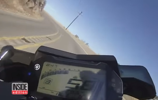 Во время падения скорость мотоцикла составляла около 60 километров в час. После того, как байкер сорвался, он и его транспортное средство приземлились в 75 метрах друг от друга.