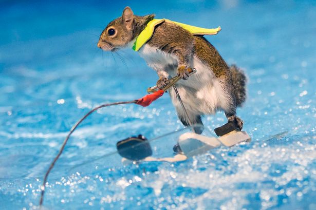 Милого грызуна облачили в крошечный спасательный жилет и поставили на водные лыжи. И тут проворная Твигги начала показывать крутые виражи в бассейне, объехав его вдоль и в поперек.