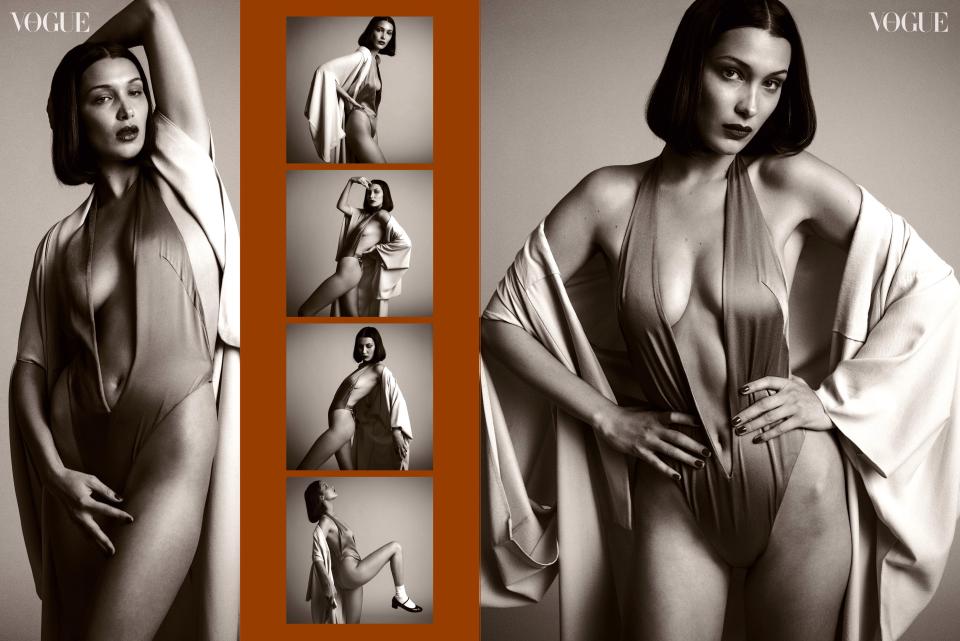 20-летняя модель позирует на страницах журнала в образе див «Золотого века» кинематографа. На винтажных снимках Белла позирует в куманике и шелковом халате, а также показывает нижнее белье и облачается в наряды того времени.