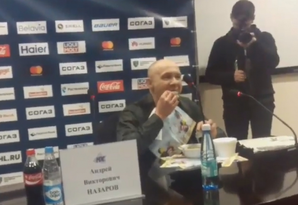 Видео необычной трапезы размещено в Twitter портала TUT.bу. Событие состоялось в четверг, 16 февраля, после встречи «Динамо» — «Нефтехимик» (2:1).
