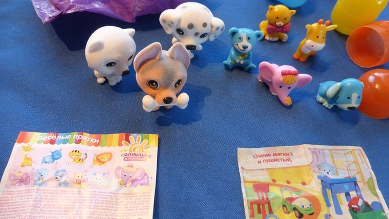 Внутри каждого яйца оказалась миниатюрная игрушка и инструкция на русском языке. Как отмечает пресса, игрушки вынесло на берег из-за сильного циклона «Акселя». Во время же самого шторма в море слетело пять контейнеров. «Киндер-сюрпризы» всплыли на берег, потому что они выполнены из пластмассы и наполнены воздухом.