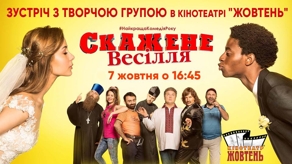7 октября в кинотеатре «Жовтень» пройдет специальный показ фильма «Бешеная свадьба» с участием творческой группы. Начало мероприятия — в 16:45.