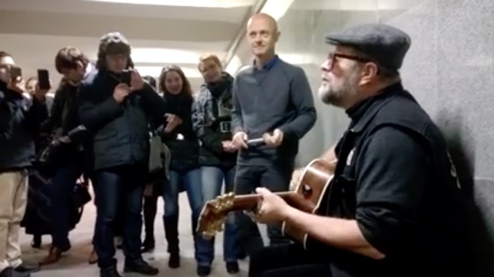 Как музыкант поет в метро заснял фотограф «Московского комсомольца». Сколько всего исполнил песен Гребенщиков неизвестно. На видео он исполняет песню «Стаканы».