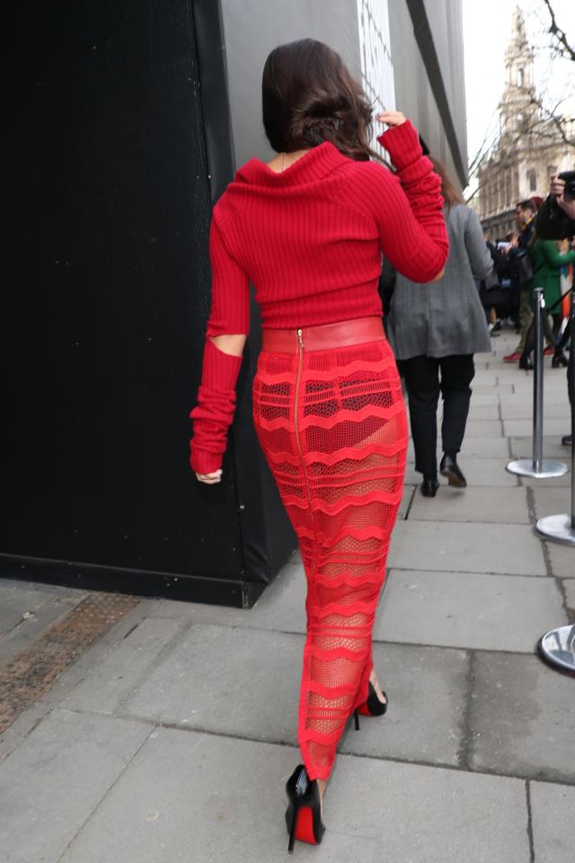 26-летняя британская модель и актриса Джорджия Мэй Фут поразила пикантным нарядом на Лондонской Неделе моды. Девушка появилась в прозрачной красной юбке и свитере в тон. Под нарядом звезды было отчетливо видно черное нижнее белье.