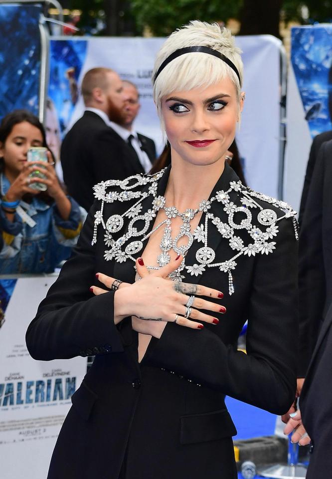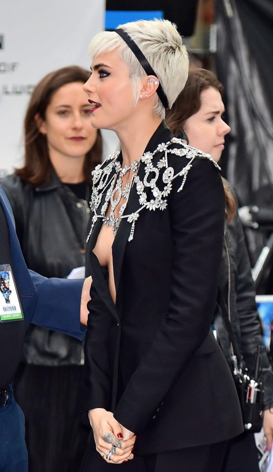 Звезда новой картины Люка Бессона Кара Дельевинь также подогрела интерес публики, надев брючный костюм без бюстгальтера. Она смело демонстрировала откровенное декольте, а папарацци даже удалось запечатлеть ее обнаженную грудь.