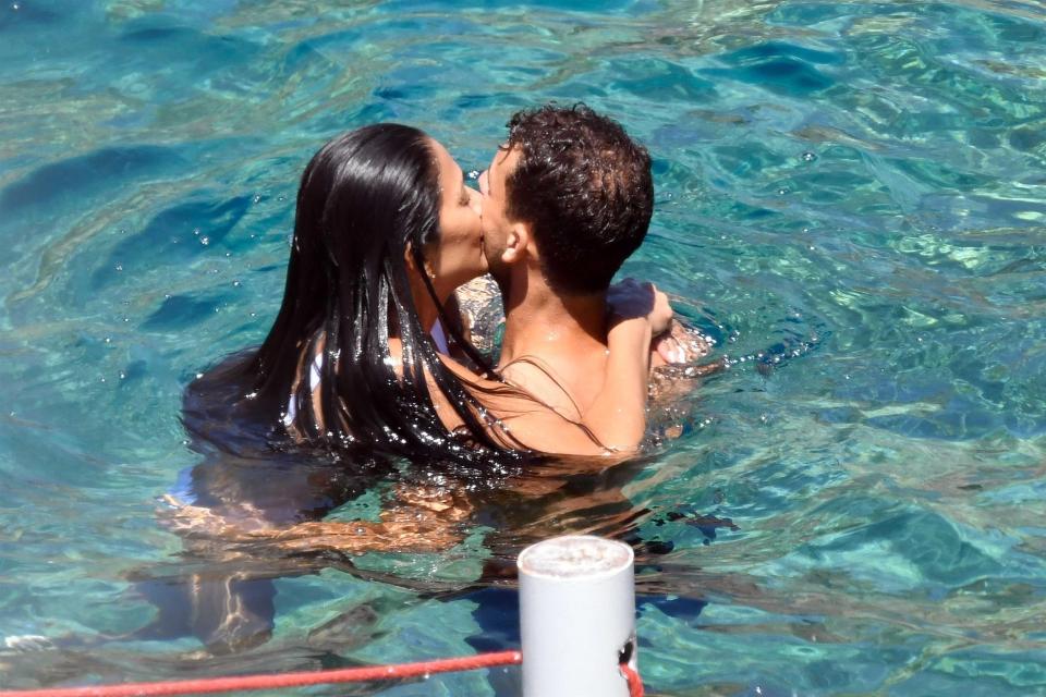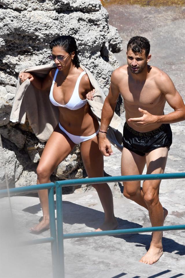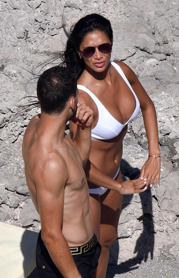 39-летняя певица и судья британского X Factor Николь Шерзингер отдыхает на острове Капри со свой бойфрендом Григором Дмитровым. Болгарский теннисист и его звездная возлюбленная не стеснялись случайных зрителей и целовались у всех на глазах сначала на шезлонге, а потом в воде.